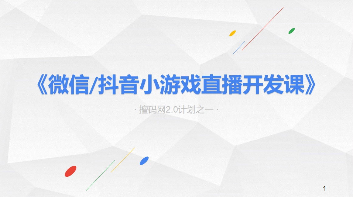 擅码网2.0计划课程之一 《微信/抖音小游戏直播开发课》